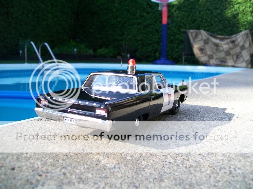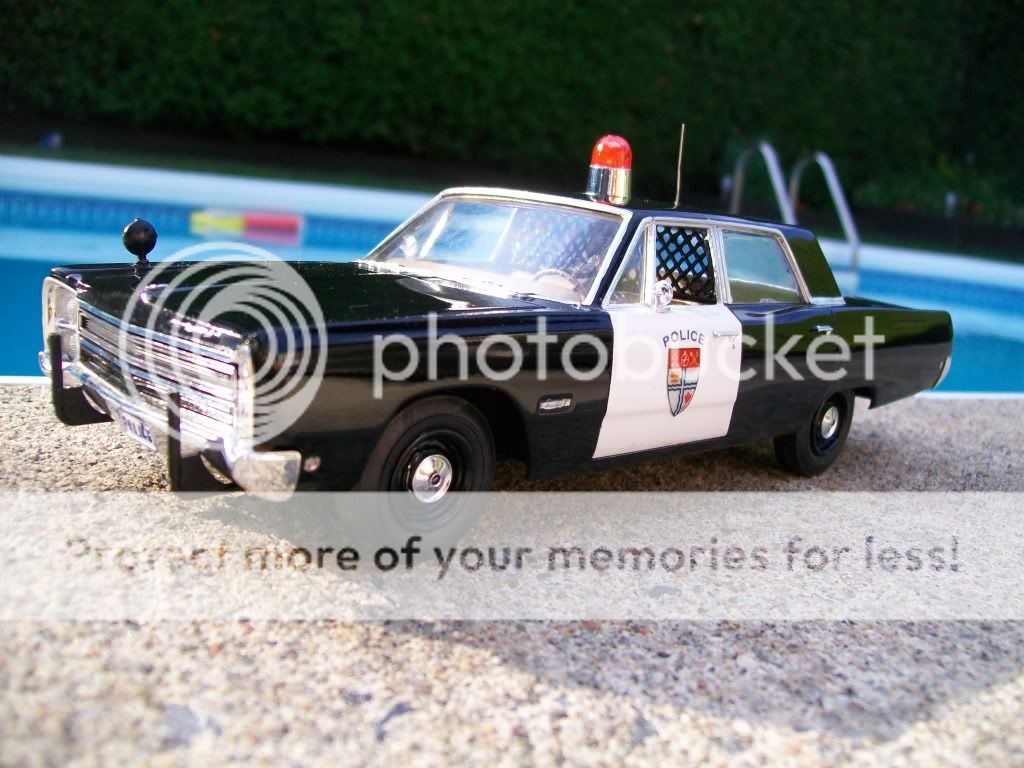 here is a kit i built 2 or 3 years ago with my dad, a 68 plymouth fury ottawa police car. now i'm sure some of you have seen the johnny lightning version. the decals are wrong on it! the refference car they used was a custom car someone built. this model has what they really used (except it should have ottawa below the logo)